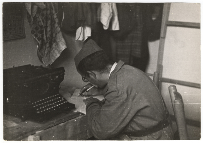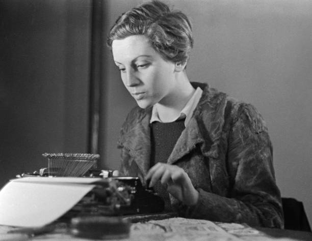 Portrait of German photographer Gerda Taro (born Gerta Pohorylle, 1910 – 1937) as she smokes a cigarette, seated behind a typewriter on a desk, Paris, France, 1936. (Photo by Fred Stein Archive/Getty Images)
